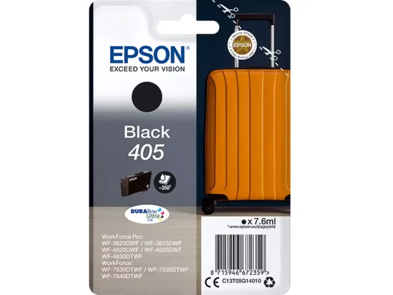 Epson Singlepack Black 405 DURABrite Ultra Ink | Epson WF-4820DWF/ WorkForce WF-7830DTWF/ WorkForce WF-7835DTWF/ WorkForce Pro WF-4825DWF/ WorkForce W