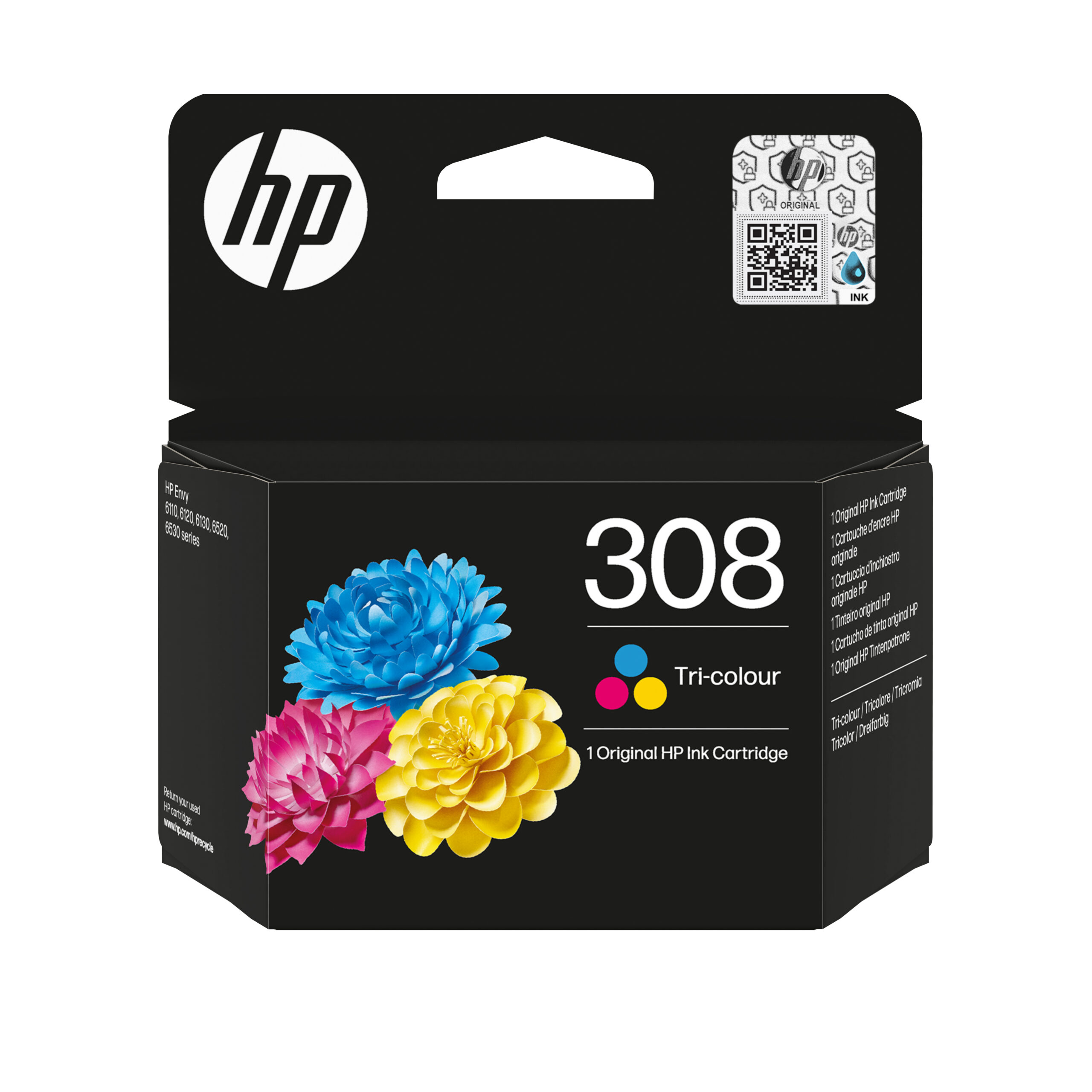 HP 308 originele driekleureninktcartridge. Type kleureninkt: Pigmentgebaseerde inkt,